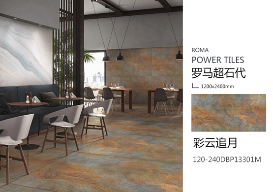 “罗马超石代系列”多款原石色系配合1200X2400mm大规格尺寸的纹路,更易设计创造出不同的设计风格,其应用创意空间更加宽广。